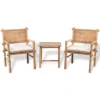 Elegant bambus altansæt fra NordicBamboo med 2 stole, bord og bløde hynder.