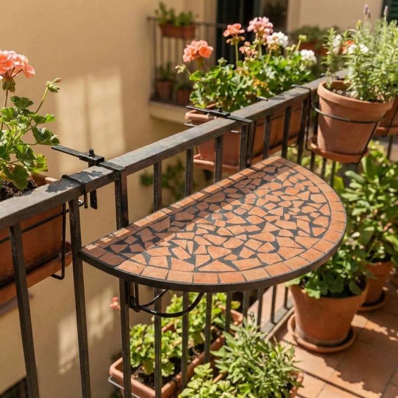 Elegant mosaik altanbord i terracotta til den pladsbevidste altan
